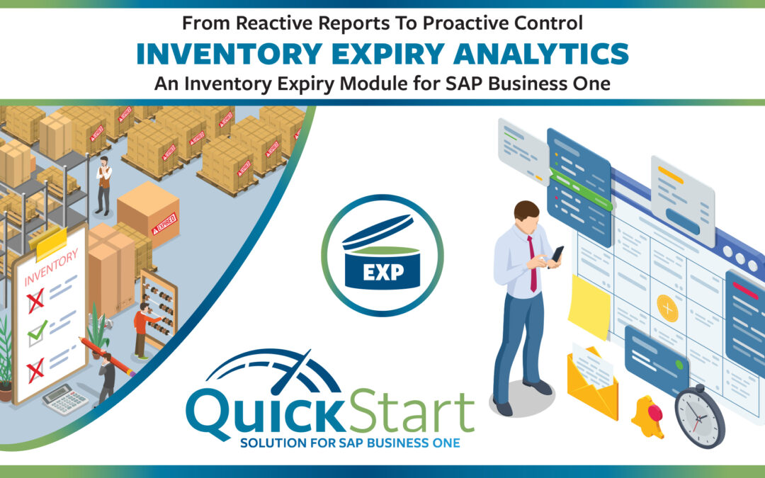 Inventory Expiry Analytics is a new module in QuickStart Solution for SAP Business One that helps teams stay ahead of expiring inventory with clear visibility into what is at risk, where it is held, and the dollar value tied to it. Keep reading below to see how the module works, what insights it delivers, and how it helps reduce expiry-related write offs.
